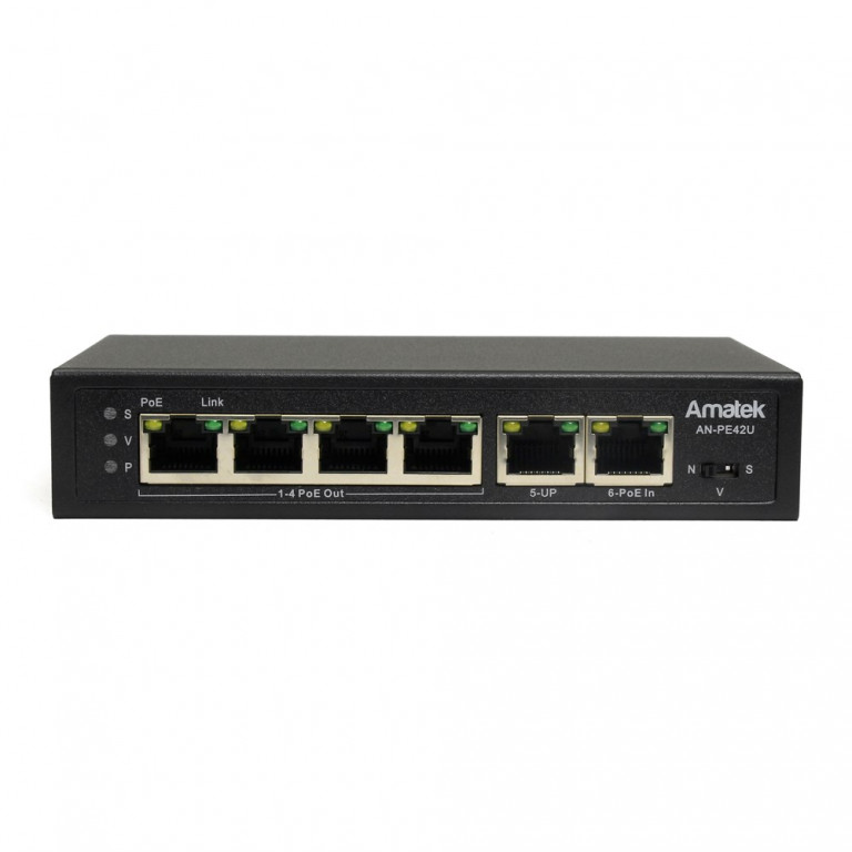 AN-PE42U (7000983) Amatek PoE удлинитель с питанием от PoE до 90Вт 6-портовый 100Мбит/с