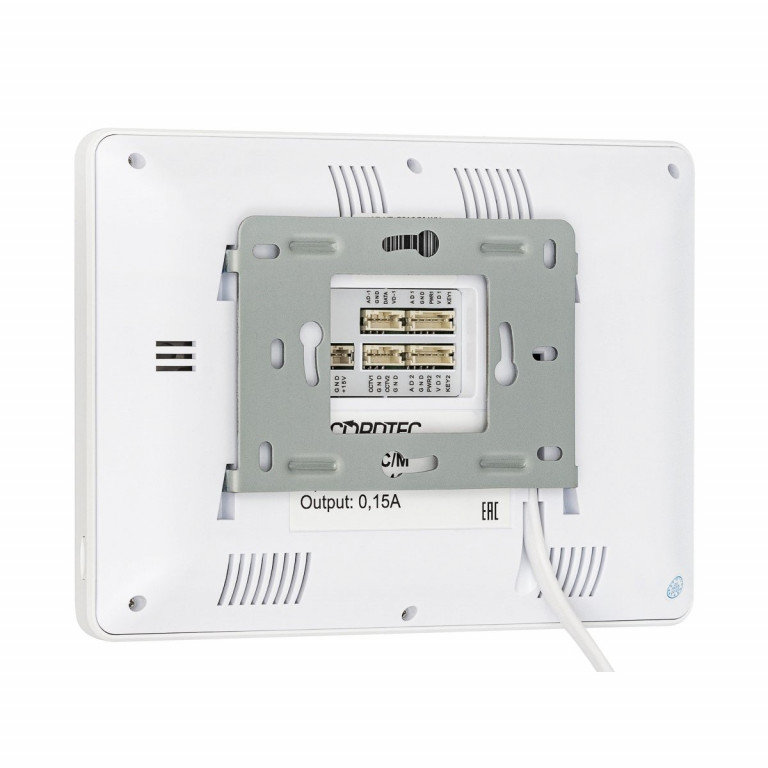 Монитор домофона 7" TFT (800х480) CVBS PAL/NTSC. Сенсорные кнопки, подключение до 2х вызывных панелей, 2х видеокамер, 4х мониторов, адресный интерком. Питание AC 100-240В. Габаритные размеры: 188х136х22 мм., 0...+40°C, Цвет корпуса белый.