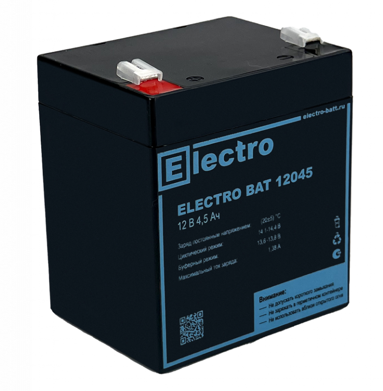 ELECTRO ВАТ 12045 — герметизированный AGM аккумулятор для систем с умеренным и высоким энергопотреблением. Устройство предназначено для использования в охранных системах, медицинском и телекоммуникационном оборудовании, приборах учёта, а также в источниках бесперебойного питания.