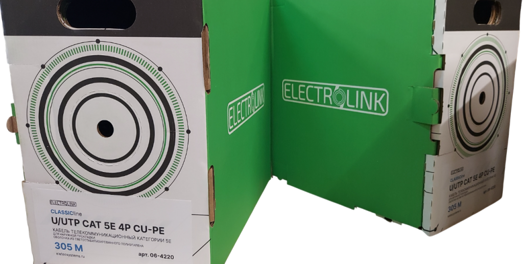 Кабель U/UTP 5E CLASSIC line от компании ELECTROLINK предназначен для создания структурированных кабельных систем и передачи данных. Он соответствует категории 5E, что обеспечивает высокую скорость передачи данных до 1000 Мбит/с при использовании всех 4 пар проводников.