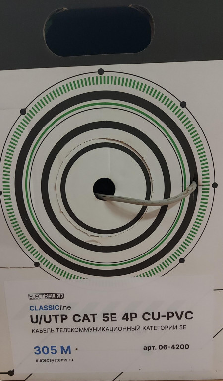 Кабель U/UTP 5E CLASSIC line 4x2xAWG24, ELECTROLINK, 305м, медь, Eletec (06-4200)