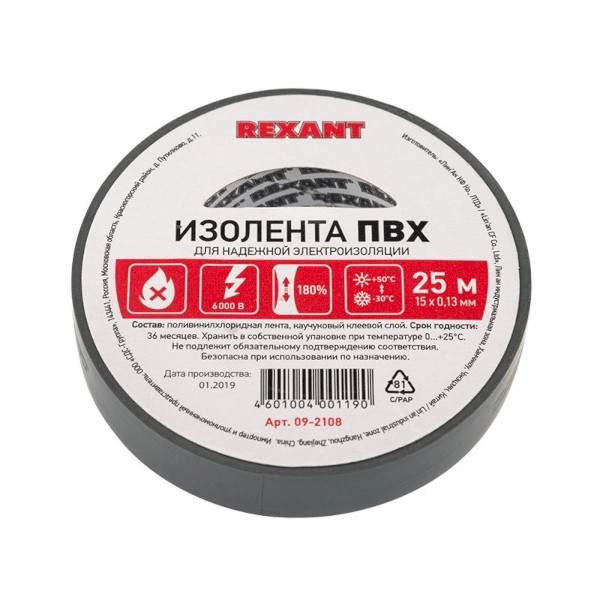 KR-09-2108 Rexant Изолента 15ммх25м, серая