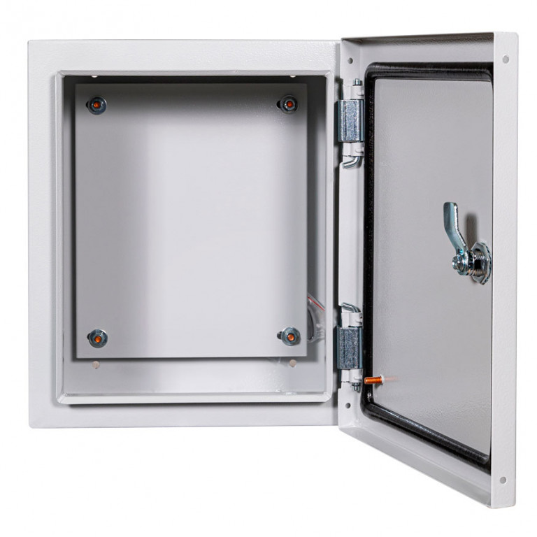 Материал корпуса: Сталь; Степень IP: IP66; Цвет: Серый; Ширина, мм: 400; Высота, мм: 500; Глубина, мм: 220; Тип установки: настенный; Вес: 9.5кг; Размещение: Улица; Толщина корпуса: 1мм.