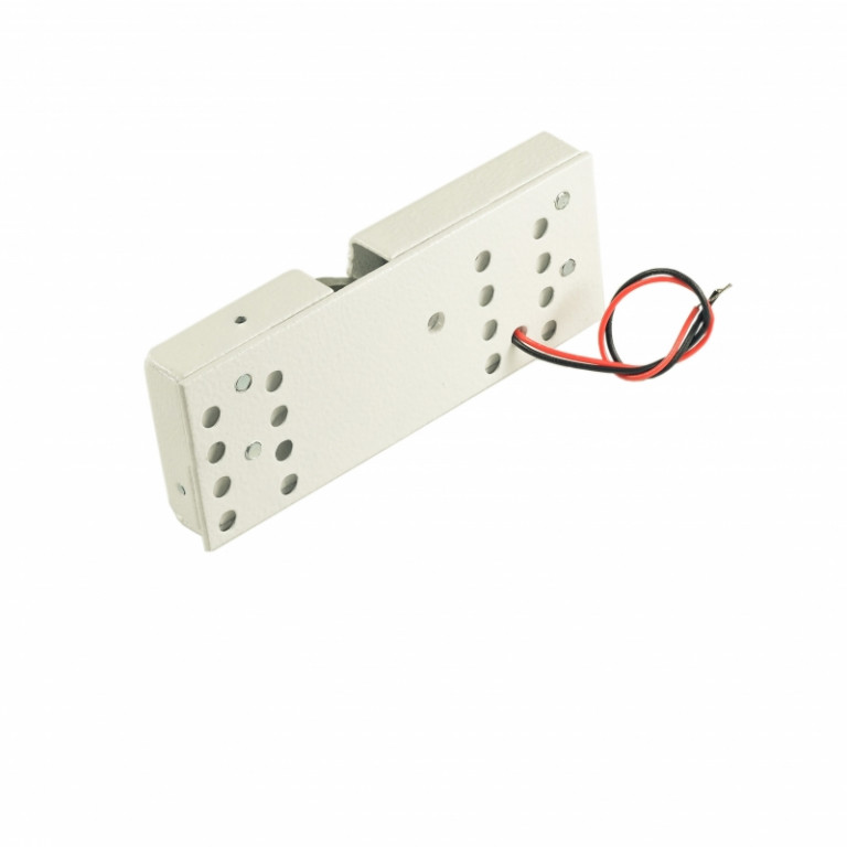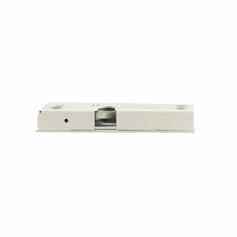 Узкий накладной электромеханический замок. Усилие удержания 300 кг. Нормально открытый, напряжение питания DC 12 В/0,1 А, -30...+50 °С, цвет - белый.