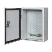 Корпус, мм: 500x400x220; панель, мм: 430x340. Кол-во вводов: 15 отв. ?28 мм (снизу). Масса: 9,9 кг