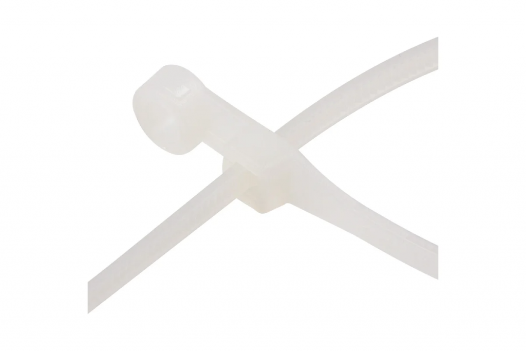 Основные характеристики: длина и ширина: 100х2,5 мм; диаметр охвата (максимальный): 22 мм; максимальная рабочая нагрузка: 8 кг; прочность при растяжении: не менее 50 МПа; модуль упругости при растяжении: 8000-11000 МПа; высокое сопротивление к основаниям, маслам, смазочным материалам, хлоридным растворителям; класс воспламеняемости: UL 94 класс V-2 (самозатухающий); не содержит галогенов; тип: неразъемные, одноразового использования; температура ...монтажа: –10...+60 ℃; температурный диапазон использования: –35...+85 ℃; количество в упаковке: 100 шт.; цвет: белый.
