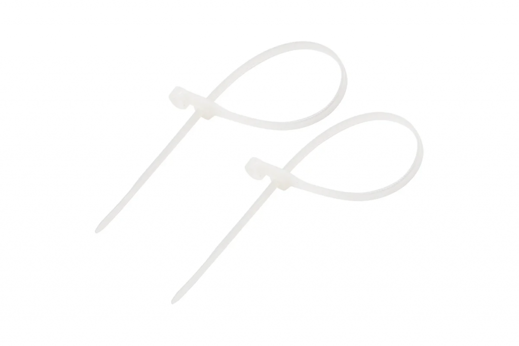Основные характеристики: длина и ширина: 150х2,5 мм; диаметр охвата (максимальный): 35 мм; максимальная рабочая нагрузка: 8 кг; прочность при растяжении: не менее 50 МПа; модуль упругости при растяжении: 8000-11000 МПа; высокое сопротивление к основаниям, маслам, смазочным материалам, хлоридным растворителям; класс воспламеняемости: UL 94 класс V-2 (самозатухающий); не содержит галогенов; тип: неразъемные, одноразового использования; температура монтажа: –10...+60 ℃; температурный диапазон использования: –35...+85 ℃; количество в упаковке: 100 шт.; цвет: белый.