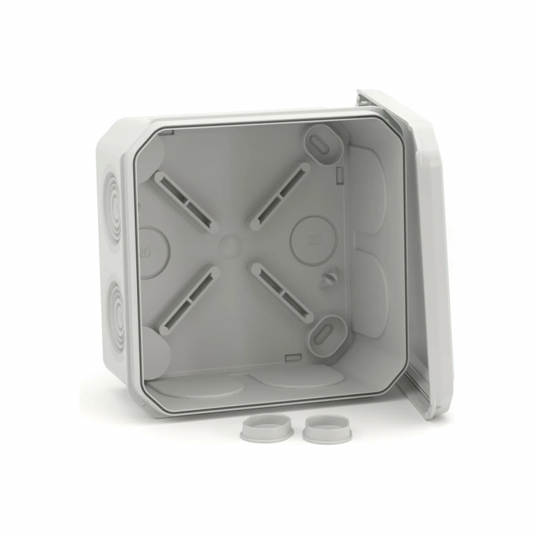 Распаячная коробка для защиты и эстетичного оформления мест соединения информационных, осветительных и силовых кабелей. Обеспечивает герметичность соединений и защиту проводки от внешних воздействий.