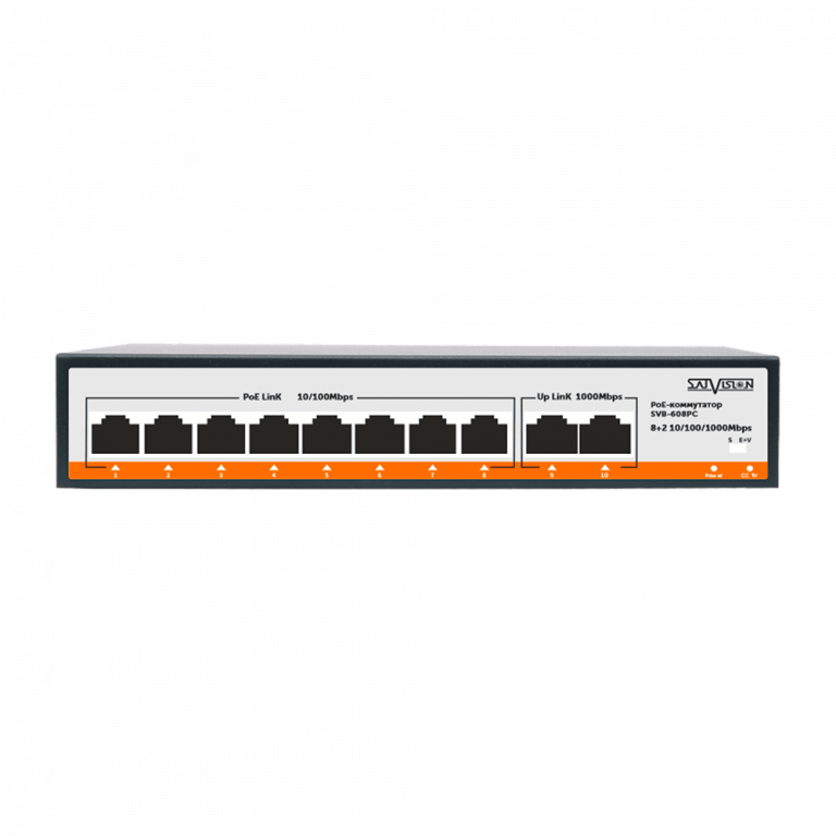 Надежное сетевое оборудование для построения масштабируемых систем — 8‑портовый PoE‑коммутатор Satvision SVB‑608PC. Устройство сочетает высокую пропускную способность и возможность питания подключённых устройств по сетевому кабелю.